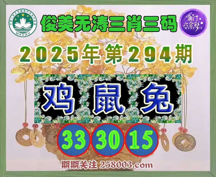 294期:〖俊美无涛〗 🧣三肖三码🧣【鸡兔】【33.30.15】开:鼠18