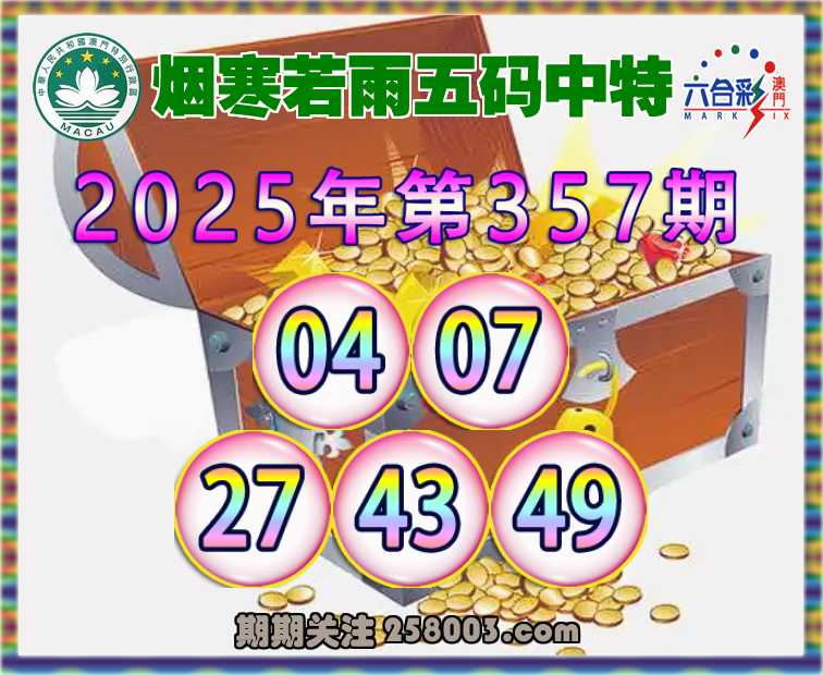 357期: 🚡《烟寒若雨》 🚡五码中特🚡【04.07.27.43.49】开:49准上榜高手